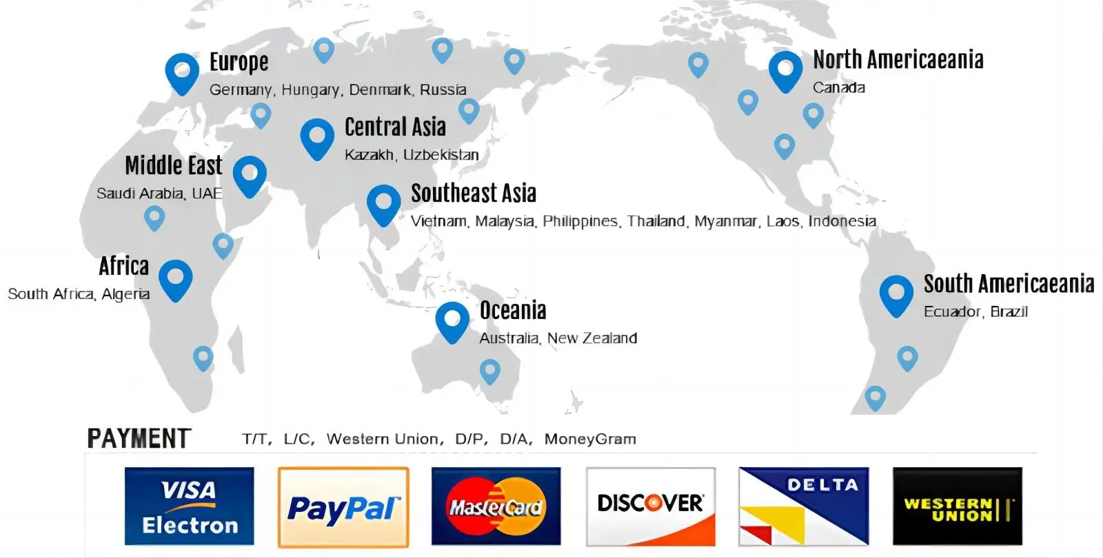 We mainly export to European Market,North American Market,Australia Market,Mideast and Southeast Asia.Because of good quality and service,we have establish good and long business relations with many clients.Welcome clients from all over the world to our factory for a visit.